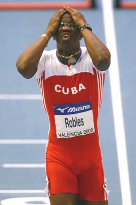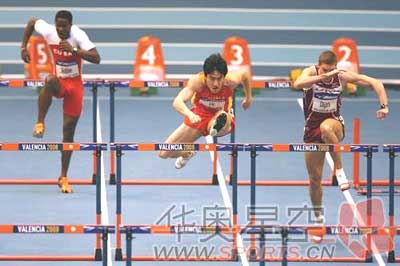 北京时间3月8日晚18:15,2008年国际田联室内世锦赛在西班牙瓦伦西亚进行男子60米栏的预赛,中国选手刘翔被分在第2组第4道,最终凭借稳定发挥,刘翔以7秒73列小组第二的成绩进入半决赛。而古巴小将罗伯斯则仅仅跑出了8秒53,小组垫底无缘半决赛,拉脱维亚选手斯坦尼斯拉夫-奥利加斯以小组第一的身份顺利晋级半决赛,法国选手塞缪尔-科科-维罗因也以7.85的成绩顺利晋级。