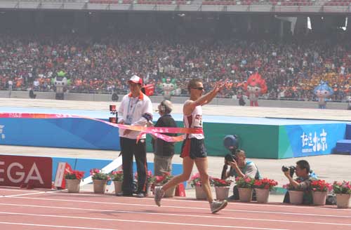 中新网4月18日电 国际竞走挑战赛今日在国家体育场“鸟巢”举行。在刚刚结束的男子20公里比赛中,今年成绩最好的的澳大利亚选手扎里德-塔兰(Jared Tallent)以1小时20分11秒的成绩获得冠军,他也成为了“鸟巢”开赛以来的首位冠军。