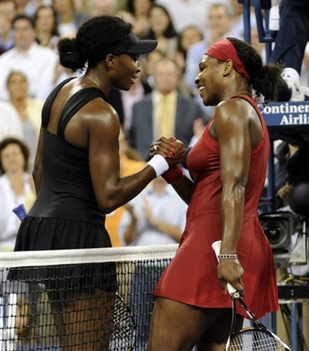 比赛结束后,威廉姆斯姐妹握手庆祝