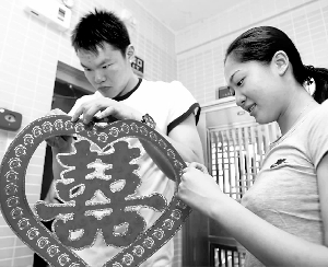 朱芳雨和胡美忙着弄红双喜,布置他们的新房。