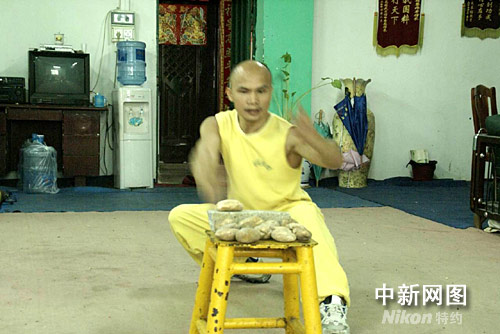中新网佛山9月22日电 (孙建驹 曾令华)在金庸、古龙的武侠小说中常有武林绝技亮相,或飞天或遁地。记者今日在广东高明区扬龙武馆看到,武馆馆长黎伟军用一双肉掌劈鹅卵石如刀切豆腐一样容易,正准备携铁砂掌绝技参战国庆黄金周举行的广东佛山十大武林高手擂台赛。
