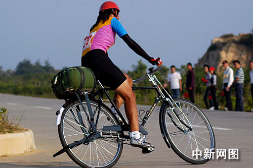 中新网10月28日电 十月二十八日下午,第六届全国农运会“自行车载重”女子四十公斤二十公里比赛在福建惠安沿海大通道进行,吸引了众多当地市民观战。