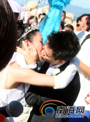 背着婚戒的小狗“优优”和“秀秀”闪亮登场,原来这一主意还是主持人鲁豫所提。彼此交换婚戒,新郎深情拥吻新娘,幸福与甜蜜瞬间凝聚。(赵仕芳)