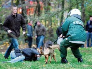 在后退过程时他不慎跌到,于是警犬就扑向他并咬住了他的裆部。而后果相当惨重:2厘米长的包皮被生生咬下悬垂在生殖器之上!随后德克被送往医院缝针救治并住院四天,万幸的是医生诊断这一伤口并未留下后遗症,功能健全不会对他今后的生活造成困扰。