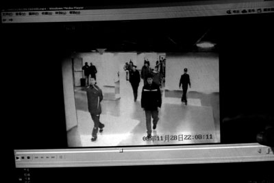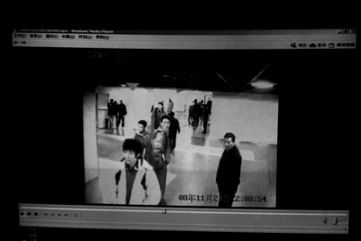 记者是昨日17时30分左右,进入监控室。当记者提出要看当日赛后的监控录像时,监控室里的工作人员很熟练地找到录像视频并将视频快进到事发时间段,还告诉记者,刘炜和上海队几点开始行动,显然他们已经看这段录像很多次了。不过,看完这段11分钟(22时-22时11分)的监控录像后,让目睹“打架门”整个过程的记者惊讶的是,由于当时通道上方的摄像头对准的是上海队休息室方向,监控录像记下的是上海队队员在向摄像头方向来回走动、张望以及上海队员冲向摄像头的画面,并没有记录下打架的场面。
