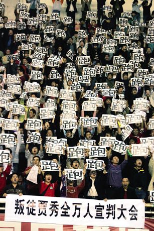 中超赛场上各种状况层出不穷,在这样的“乱世”中生存,球迷们早就学会用其他方式自娱自乐了。与其哭天抢地为无药可救的中国足球哀怨,不如挖空心思想一条娱乐大众的标语吧。从河南主场“专治各种不服”,到“叛徒贾秀全万人宣判大会”,从“海滨多到唐城宾馆”,到“鲁治申”,我们看到了一个日益娱乐化的中国足球。