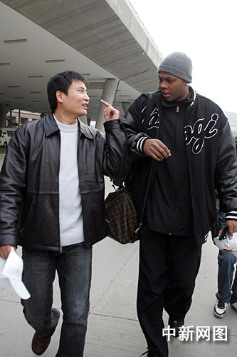 12日下午,前NBA休斯敦火箭队球星邦奇•威尔斯飞抵太原。作 者:张云