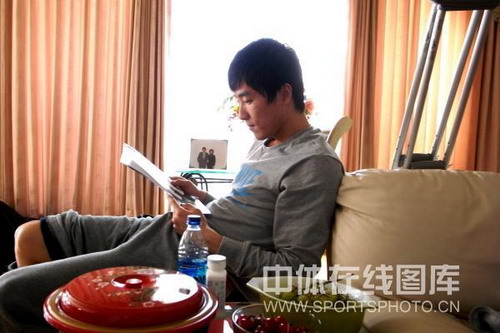 刘翔在美照片曝光:病床上玩手机 俏皮微笑(组图)(3)——中新网