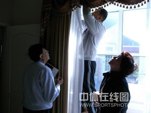 2008年12月7日刘翔的妈妈(右)布置临时住所