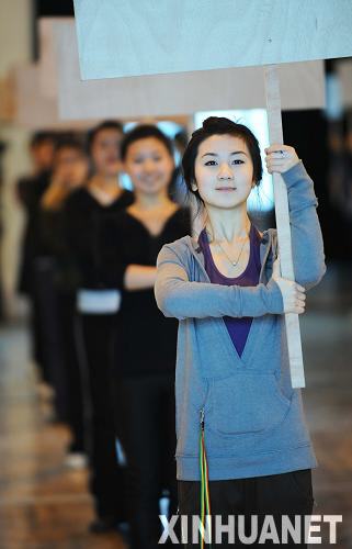 2月4日,持牌礼仪小姐在训练中。第24届世界大学生冬季运动会的“持牌手”近日开始封闭式训练,以迎接大冬会的到来。