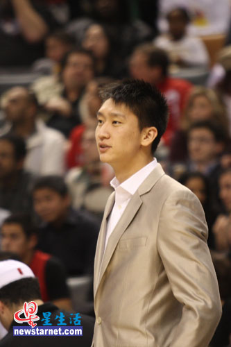 身着西装的孙悦更多的时间只是静静地坐在场边观战。只是在比赛暂停期间,他才起身与队员一起倾听主教练对比赛的部署。在中国孙悦是一个很有实力的球员,但在NBA却不得不从板凳上站起。