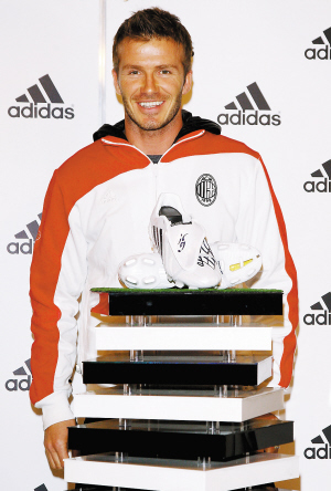 而前天,小贝这个体坛最勤奋的售货员又出现在了米兰的一个运动品专卖店内,依然是酷酷的造型,职业性的微笑,不过这回不卖内裤,改卖足球鞋了,但照样有上千人前来捧场,真不知道,小贝下一步是不是要卖袜子了?