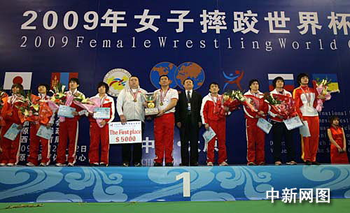中新网3月22日电(张云)今日晚间,在太原市滨河体育中心进行的二00九世界女子摔跤锦标赛(团体赛)的决赛中,中国女队不负众望,以五比二的战绩取胜加拿大队,实现女子摔跤世界杯三连霸。加拿大队获得第二名,第三名由日本队夺取,乌克兰队取德第四名成绩。