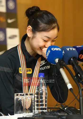 中新网4月1日电 据韩国《中央日报》报道,在日前的花样滑冰世锦赛中获胜的金妍儿31日下午抵达韩国仁川机场,她在回国后召开的记者招待会上听取了记者的提问,表现得轻松愉快。
