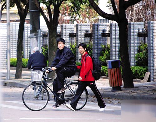 刘翔骑车带人 美女索要签名不搭理