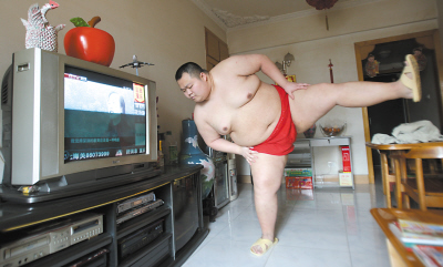 短短4年时间,体重从70公斤增加到了至少150公斤,沙坪坝区陈家湾一胖哥喜欢上了冷门的相扑运动,并打算3年后自费前往日本学习相扑术,成为一名职业相扑手。这名“重庆相扑男”的照片一贴上网就成了网络红人。由于重庆的相扑选手只有他一个,一直找不到合适的对手过招,无奈之下,前日晚上,这位红人在天涯上发帖,正式邀请一位泰拳选手进行一场另类的比赛。