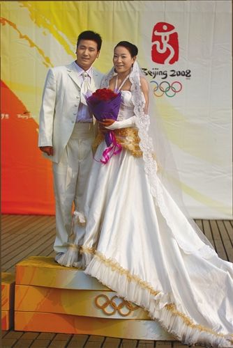 北京奥运会后,帆板冠军殷剑就开始筹备自己的婚礼,青岛的一家影楼接到了为这位奥运会冠军拍摄婚纱照的任务。他们的婚纱照可谓是体育风格十足,除了在奥运会领奖台上、船上的写真造型外,她的婚礼还是定在了邛海上举行,一切无不突出了北京奥运会帆板冠军的身份。