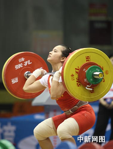 在48公斤级比赛中,可谓高手如云。北京奥运会冠军陈燮霞,3项世界纪录保持者和2007年世界锦标赛冠军的杨炼在该级别比赛中齐齐亮相。但陈燮霞、杨炼两人并未举出最好成绩,只是平稳进入全运会决赛,未斩获全国锦标赛任何奖牌。