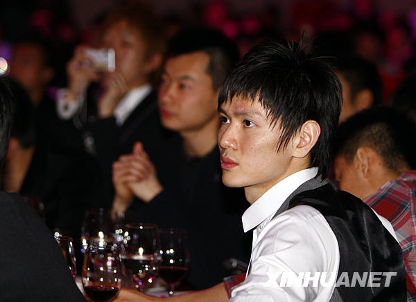 5月2日,鲍春来在婚礼上。当日,羽毛球奥运冠军高崚的婚礼在北京举行,众多明星前来祝贺。新华社记者张晨摄