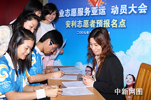 据了解,这是广州首次由企业自发组织的亚运会志愿服务大型动员会,上千名安利志愿者踊跃报名参加亚运志愿服务。