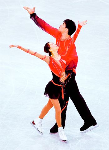 北京时间今天凌晨,在瑞典哥德堡举行的2008年花样滑冰世界锦标赛双人自由滑中,中国组合张丹/张昊不敌德国组合萨维申科/斯佐尔科维获得亚军,德国人在沉寂九年之后再度摘得世锦赛的金牌。庞清/佟健排名第五位,小将董慧博/仵一鸣获得第12名。中国双人滑实现世锦赛三连冠的梦想,宣告破碎。