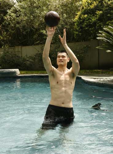 对于“水疗”这种特殊的体能恢复方式,姚明也是乐在其中。泳池内光着膀子的姚明显得格外高兴。