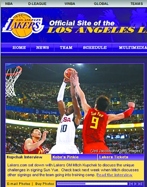 昨天,湖人官网头条位置刊登了对俱乐部总经理库普切克的采访,谈话的唯一内容就是孙悦。库普切克披露,为了得到孙悦,他们忍痛割爱,放弃了小加索尔。为了更深入地了解孙悦,库普切克日前还曾专门咨询过科比。