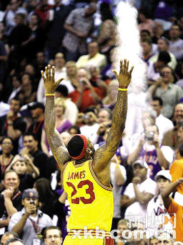 凤凰城太阳队的主场美航中心球馆是勒布朗·詹姆斯进入联盟以来唯一一座没有征服过的球馆。此前,詹姆斯在那里的战绩为尴尬的0胜5负,现在他可以吐气扬眉了。而且骑士队也结束了10年来客场不胜太阳的历史。