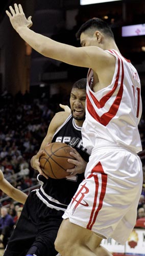 虽然说火箭最终输掉了比赛,但是我们却在比赛中欣喜的看到了一件事情,那就是,姚明在面对自己的老对手邓肯的时候,终于扭转了自己一贯以来的颓势。其实在NBA中一直就有这么一种说法,邓肯在场上怕奥尼尔,奥尼尔怕姚明,而姚明则怕邓肯,三人之间形成了一个循环套。,但是,今天姚明的表现,却接开了这个循环套中打得最死的一个结。