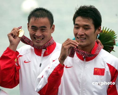 李臻/林淼在男子一千米双人皮艇的比赛中,以三分五十六秒四二三的成绩获得冠军。伊朗选手获得亚军,成绩为三分五十八秒四九一。马校杰/黄少坤在男子一千米双人划艇决赛中,以四分二十二秒零零三的成绩获得冠军。乌兹别克斯坦组合获得亚军,成绩为四分二十五秒五一一。