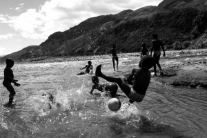 在贫穷的阿尔君卡尔,足球是惟一值得骄傲的“特产”。但孩子踢完球后只能去小溪里洗澡,“营养餐”不过是一大盆米饭和大豆。为了节约,男孩踢球时都只穿短裤。这里甚至没有普及电视,在厄瓜多尔前两次征战世界杯时,有电视机的人家都会开门迎客。这里没有正规的足球场,没有教练,没有球鞋,但这里的孩子能踢真正的“世界杯”。