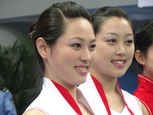 5月12日晚,第11届全运会体操预赛暨2009年全国体操锦标赛进行了最后一次颁奖彩排,图为清新可人的礼仪小姐。