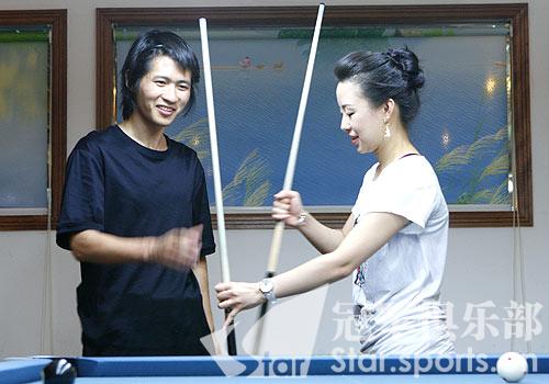 华奥星空上海5月16日电(记者李磊 摄影报道)一个是台球技术最好的职业车手,一个是赛车技术最好的职业球手,两位极具人气的明星终于在台球桌上遭遇了。昨天下午,“九球天后”潘晓婷在自家的练球房里与作家车手韩寒进行了一场友谊赛。虽然韩寒的球技已算是车手中的顶尖水平,但跟职业球手相比还是有不小的差距。虽然“潘老师”一边现场指导,一边也手下留情,但最终还是以十余场全胜的战绩把韩寒打得“落花流水、心服口服”。