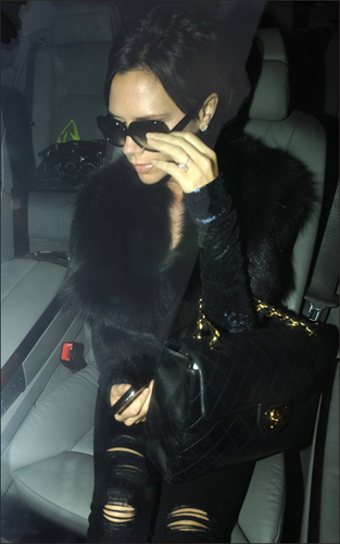 辣妹紧跟时尚风 贝嫂奢华皮草配破洞长裤(组图)(3)