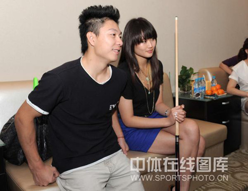 别以为李小鹏台球水平就这么高,他打得还是相当不错的。一杆两杆,最多时候,他能连续打进三球。“上次来上海,特别跟潘晓婷学过。所以水平还可以。以前一年也打不了一次,主要是训练占据大部分时间。”