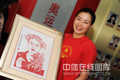 郭晶晶获赠奇特剪纸作品 开心笑容美艳如花(图)(3)