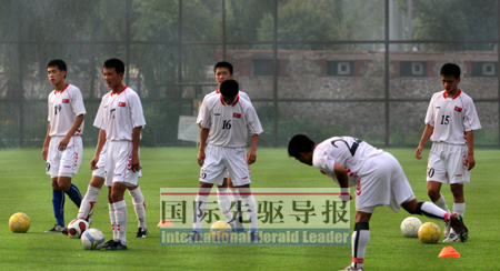 朝鲜足球冲进世界杯,引起了全世界球迷对这支神秘之师的好奇,处于封闭状态的朝鲜究竟是如何训练出一支世界杯球队的呢?适逢近日朝鲜青年足球队到秦皇岛参加与中国国青选拔队的热身赛,《国际先驱导报》特约记者特意前往打探消息,但要真正探究这支队的生活和训练情况却根本没有可能。如果说刻苦训练是朝鲜足球能够在亚洲乃至世界立足的一大法宝的话,保持神秘也许就是朝鲜足球的另一个秘密武器。