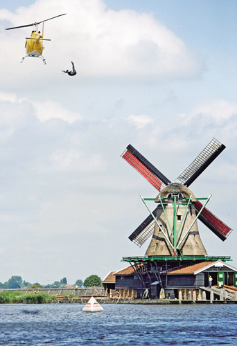 10米台?还是3米板?跳水一定要站在固定的地方往下跳吗?哥伦比亚选手奥兰多·杜克日前就从飞翔在30米高空的直升飞机上纵身跳下……转体、空翻、抱膝一系列动作做得丝丝入扣,并不比奥运冠军田亮逊色多少。