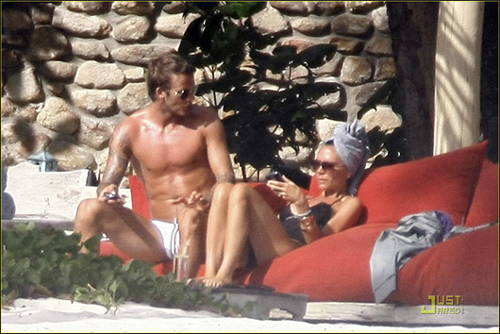 从照片来看,这对夫妻丝毫没有受绯闻和队友指责的影响,很享受海边的度假生活。两人在阳光下丝毫不吝啬展示自己的美好身材,享受着日光浴,但此时的他们明显已不是热恋的小情侣了,倒是有着“老夫妻”的感觉,时不时各自讲讲电话,维多利亚很自然地把脚搭在小贝的腿上,一切都很默契。