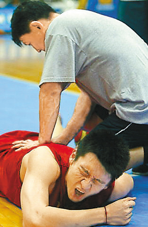 可惜乐极生悲,在一次投篮后,孙悦突然捂着大腿倒下,龇牙咧嘴看起来很痛苦,诊断结果是因为用力过猛,导致臀部抽筋。其实,与其说用力过猛,还不如说“秀”过了头。