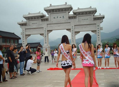 少林寺泳装走秀令人瞠目 和尚也爱拍美女?(组图)(11)