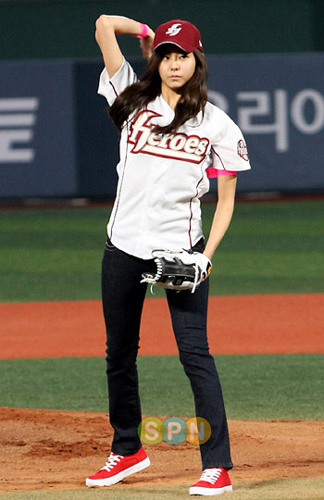韩国女星亮相球场开球 被誉为"蜜腿"美女(组图)(6)