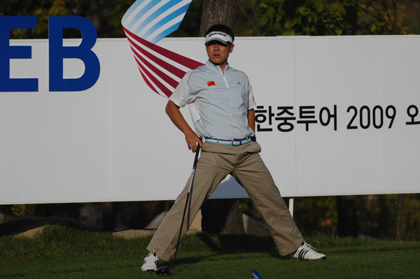 组图:中国选手霍伟参加高尔夫巡回赛 表情生动(2)