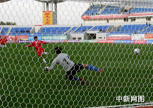 今天下午进行的两组赛事各队踢得都很艰苦。上一轮中大比分胜出的江苏队在与天津队对决中,一开场就制造了几次很有威胁的射门机会,但始终无法攻破天津队的大门。双方在场上的争夺异常激烈,经过90分钟的激战双方均无建树。加时赛后,把比赛拖入了残酷的点球大战。天津队继前日之后,第二次在滕州奥体中心上演点球大戏,以4:2的战绩获得胜利,天津队的守门员则成为该队的功臣。