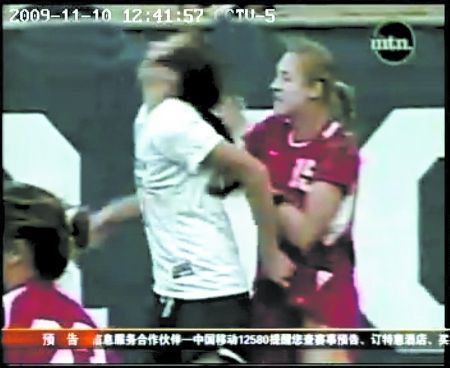 这些被评为“美国大学生足球联赛有史以来最严重犯规”的系列恶意动作发生在11月5日NCAA联赛西部半决赛上,21岁的兰伯特频频用犯规动作骚扰对手。在屡次与对方进行纠缠后她恼羞成怒,先是用肘击打对方进球队员卡里·佩恩的后背,动作之明显,后来又在对方球员攻到本方禁区内时,直接用脚踢到对方头部,当时对方球员已经倒地!更恶劣的是,下半场进行到一半时,兰伯特突然用力拽了一下卡斯迪·莎姆维的辫子,卡斯迪整个人被横着拉倒在地上,这个场景在男足赛场上也极为罕见。奇怪的是,这一系列粗鲁野蛮的动作主裁竟未注意到,就这样,兰伯特“幸运地”打满了90分钟,仅仅因为一次将球踢向对手脸部的“轻微”犯规吃到一张黄牌。