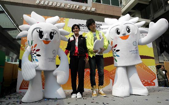两个吉祥物设计以火和狮子为创作元素,展现了香港人自强不息、同处“狮子山下”的拼搏互助精神。吉祥物的设计师毛沛畿和梁伯强表示,“东仔”和“亚妹”的头发象征火焰,代表香港人的活力,身上的烟花斑纹与2009年东亚运动会会徽相呼应,绽放出奥运五环的颜色,代表着发扬体育精神。