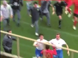 国安队员说,洪指导一直在制止国安队员,同时找到对方主教练,希望能共同制止群殴。对方球员不停推搡洪元硕,幸好洪指没受到太严重的攻击。