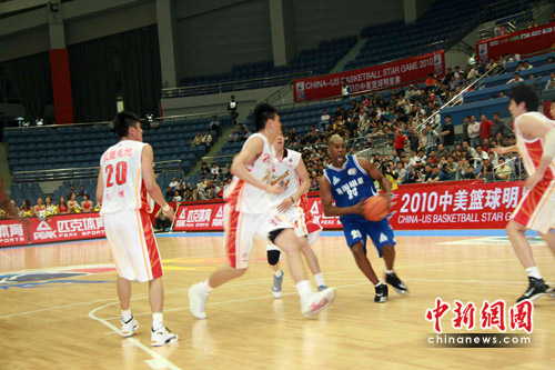 5月7日,周五的晚上,2010年中美明星篮球赛在浙江杭州黄龙体育馆开赛。和姚明搭档过的卡尔-兰德里,拿过NBA总冠军的“手套”佩顿,代表美国国家队拿过奥运会金牌的里奇蒙德……赛前,主办方的宣传词句中,不乏璀璨的光环。