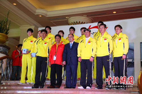 中新网5月9日电(记者 宗晨亮)2010年汤尤杯即将在5月9日-16日开打,国家羽毛球队已抵达马来西亚首都吉隆坡。大赛在即,近日国家羽毛球队参加了“李宁-中国国家羽毛球队誓师大会”,李宁到场与羽毛球队总教练共同揭开了这次出征的新装备,林丹、鲍春来等国家羽毛球队主力队员也身穿全新的比赛服装集齐亮相,总教练李永波则代表国家羽毛球队信心十足地表示“我们一定要在这次的汤尤杯上继续取得佳绩,力争卫冕。”