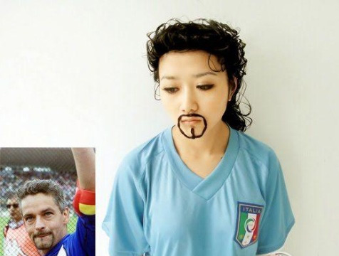 美眉模仿有“忧郁王子”之称的意大利球星巴乔